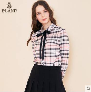 ELAND撞色格子格纹衬衫女2019春季新品经典学院风减龄EEYC96A11I