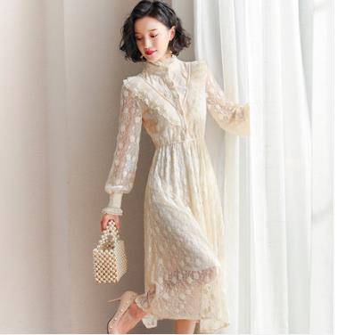 法国小众连衣裙过膝2019新款很仙的蕾丝打底内搭春秋装修