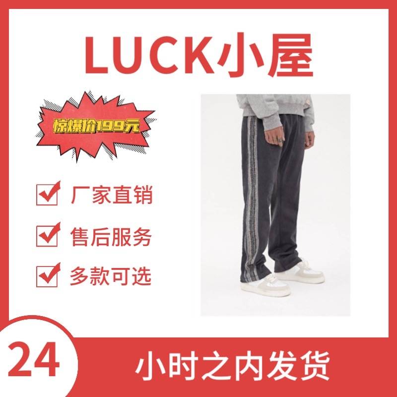 LUCK小屋粗纹拼条直筒宽松微喇叭裤男痞帅长裤子美式冰丝薄款裤子男春秋夏季潮牌宽松男生高弹休闲裤运动直筒薄凉感透工装长裤