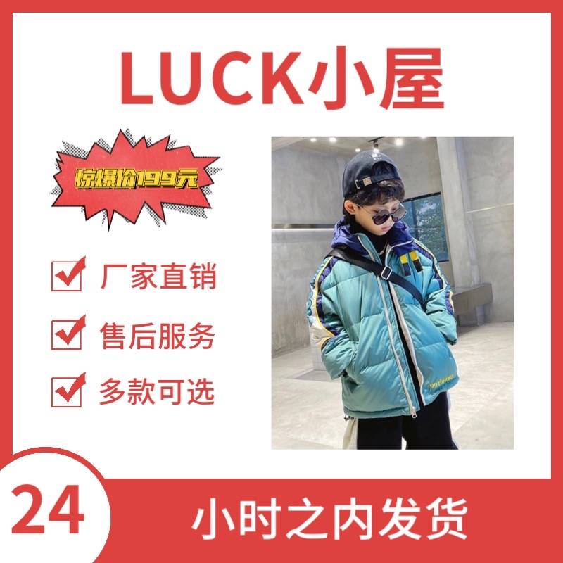 LUCK小屋棉衣洋气冬装男孩冬款儿童中大童加厚童装棉袄外套溜溜蛙童装男童外套秋冬装棉衣中大童夹棉加厚风衣儿童外套洋气时尚