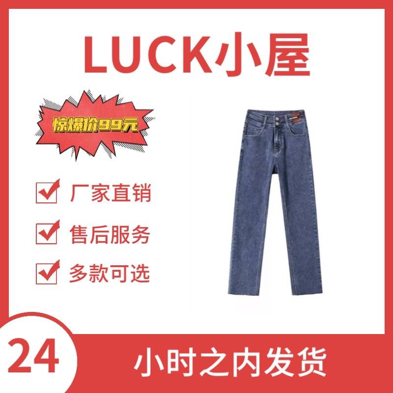 LUCK小屋高腰牛仔裤女坠感直筒宽松显瘦春秋垂感拖地阔腿裤子春夏秋冬高腰牛仔裤女坠感学生直筒宽松显瘦2023新款春