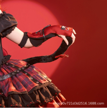 暗黑吊带裙黑红格子亚文化蕾丝A字蓬蓬裙