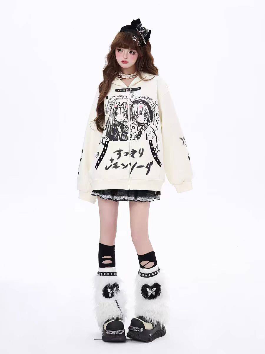 亚文暗黑漫画日系少皮扣宽松设计感连帽外套早秋