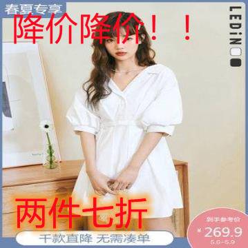 乐町气质法式衬衫连衣裙春装2021女装白色翻领气质甜美连衣裙子