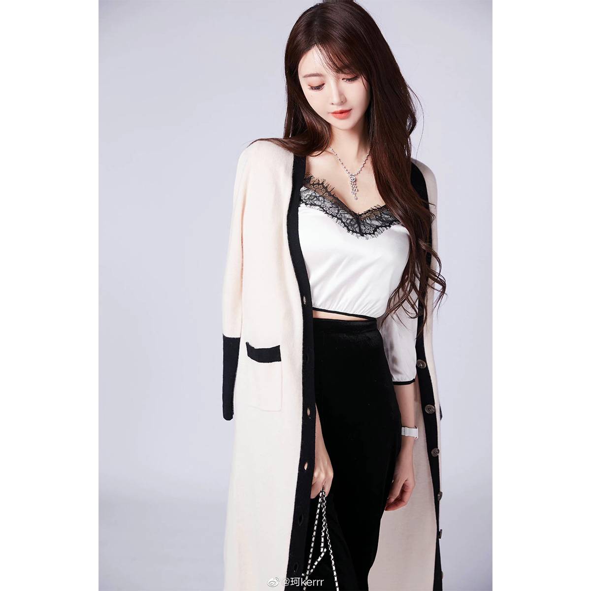 VERAMOON 偏爱/羊绒圈圈 法式气质中长款优雅针织纯色外搭开衫女
