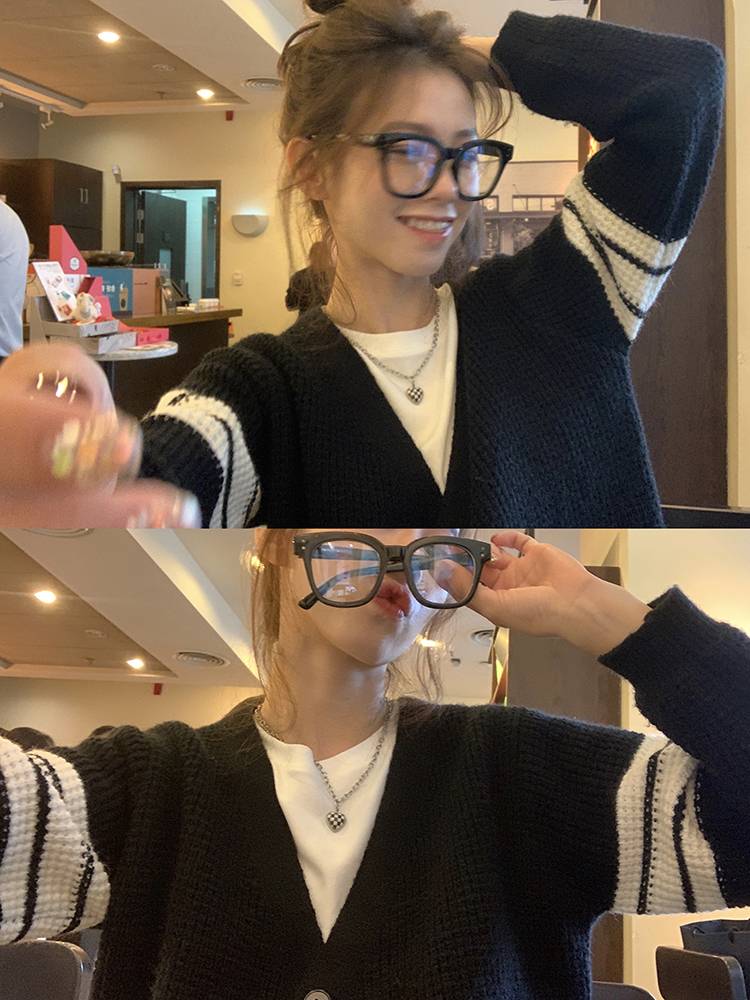 Miss AB华夫格针织开衫外套女春秋2021新款韩版慵懒风宽松针织衫