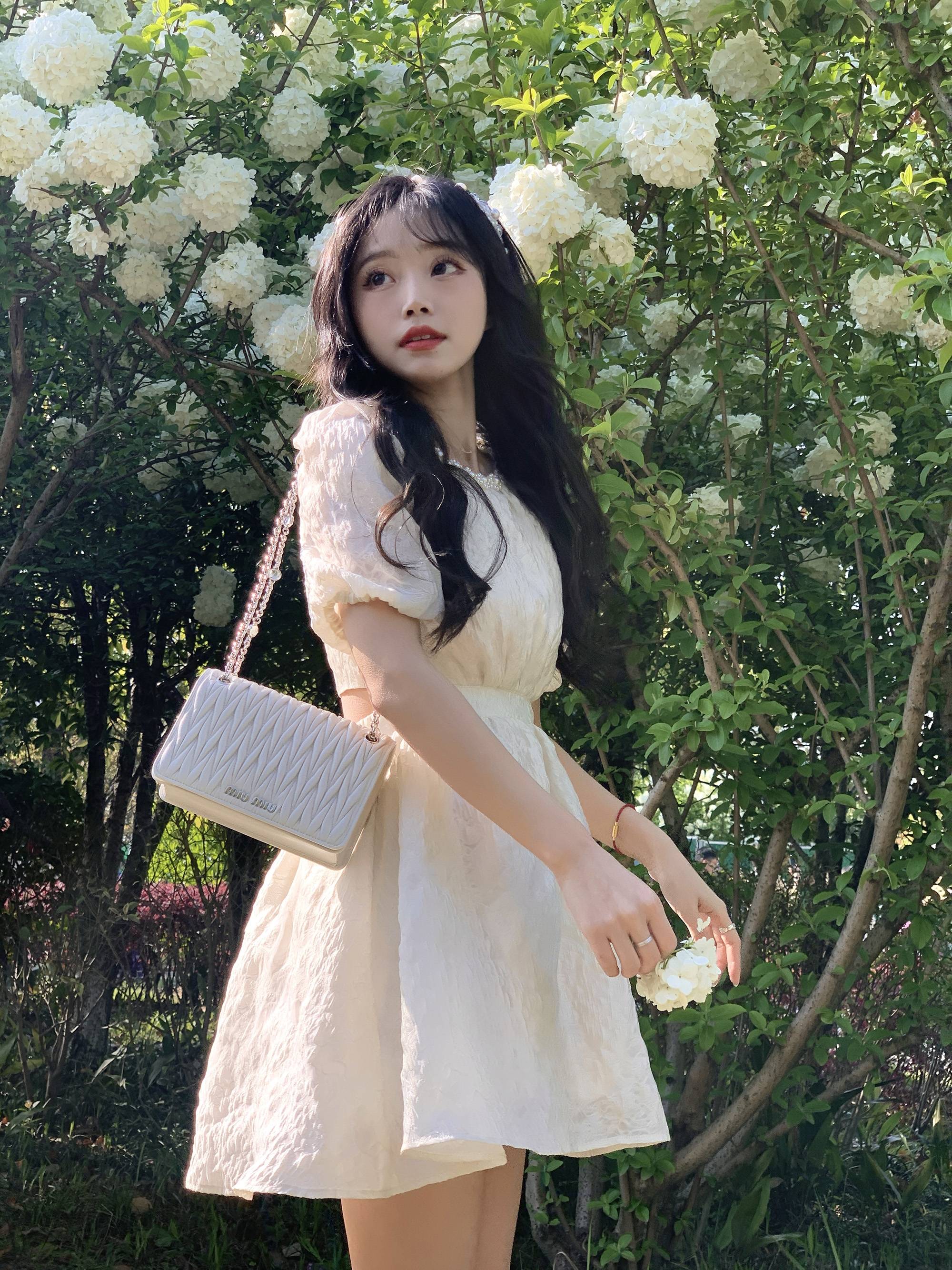 露背肌理公主裙泡泡袖温柔风仙女连衣裙夏