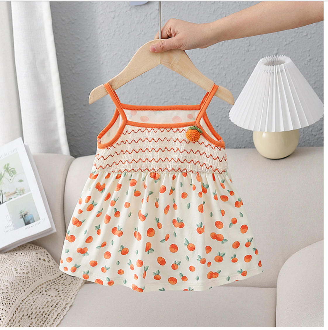 天静童装2023年夏季新款女童吊带裙 橘子印花宝宝无袖背心裙