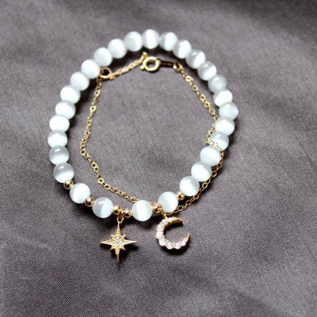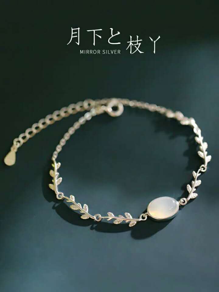 精致树叶可爱枝丫森系森林月光蛋白渐变S925纯银手链女款