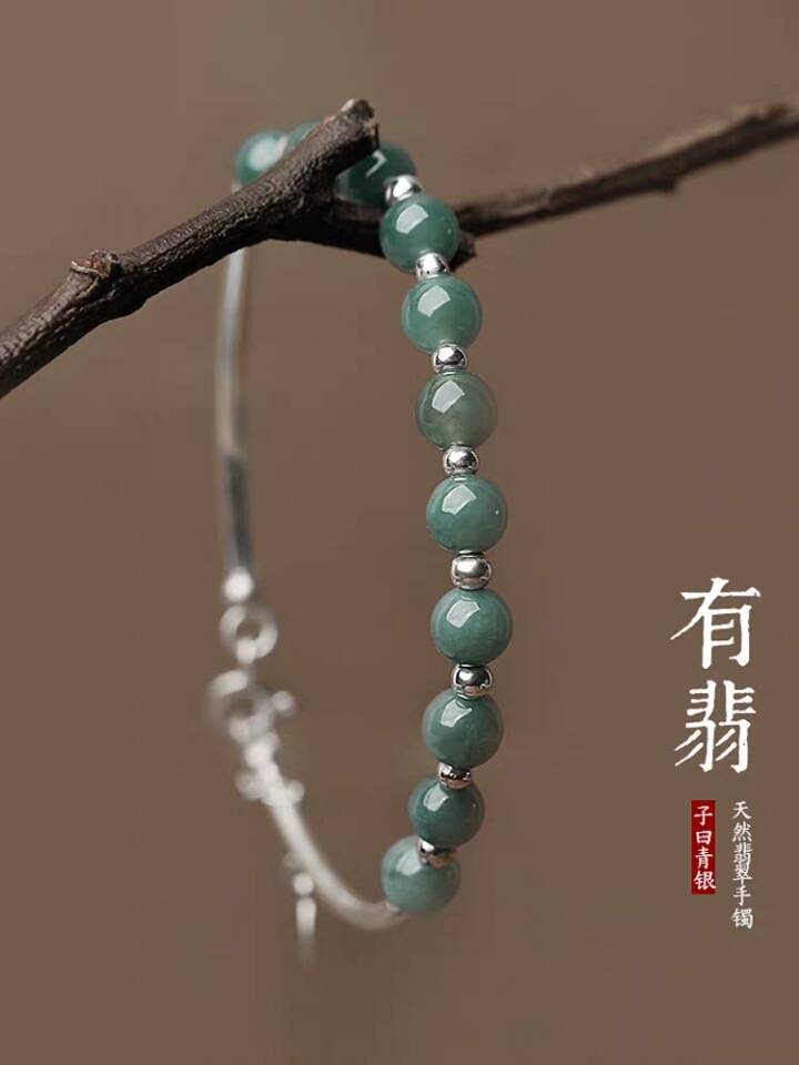 【有翡】古风手链复古翡翠手链女纯银手饰汉服配饰手镯女古风饰品