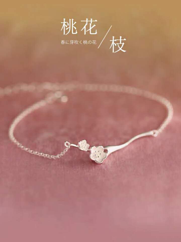 桃花枝可爱文艺清新花朵樱花S925纯银手链手环中国风女款