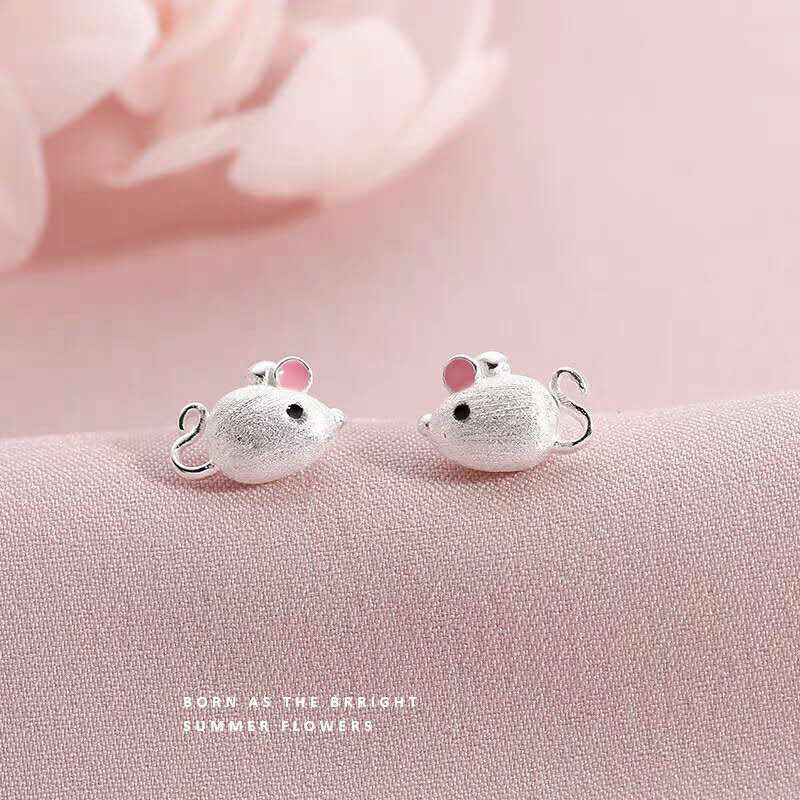 s925纯银过年喜庆耳钉女2020本命年中国风小老鼠耳环鼠年生肖耳饰