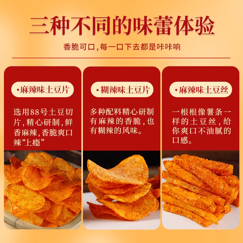 滇二娃农科院云南特产麻辣土豆片贵州小吃薯片休闲小零食网红爆款