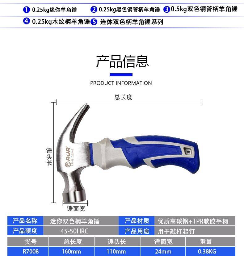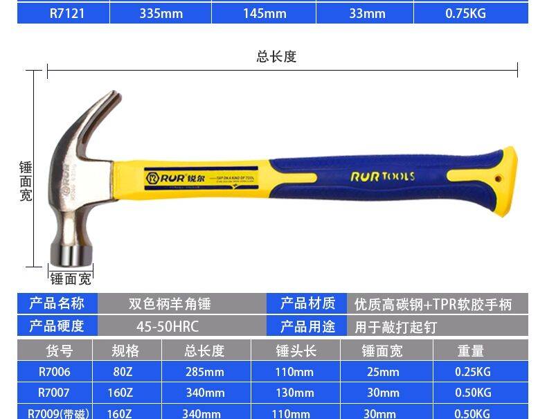 羊角锤铁锤榔头锤头捶子木工家用钉锤多功能万用起钉锤小锤子工具