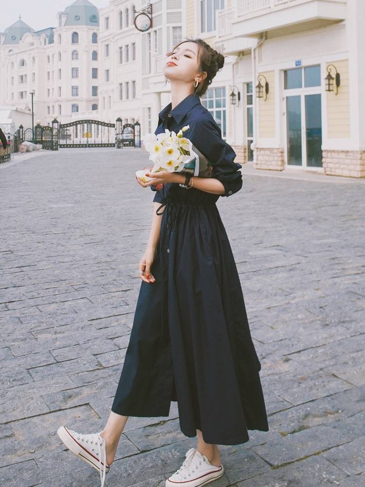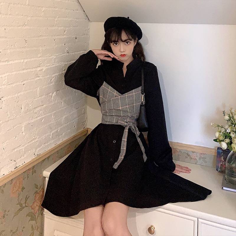 法式收腰显瘦连衣裙女秋长袖2020新款气质温柔轻熟风中长款衬衫裙