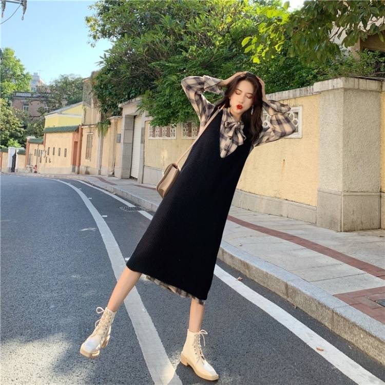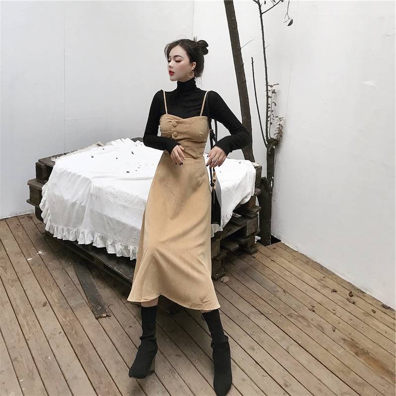 秋季两件套吊带连衣裙套装2020春秋新款女背带裙子秋冬高端气质