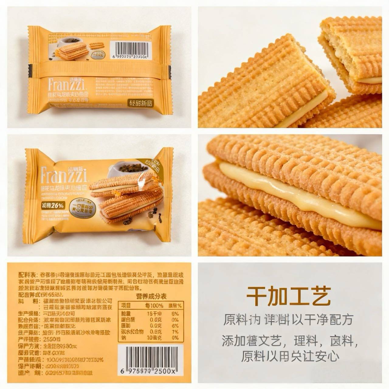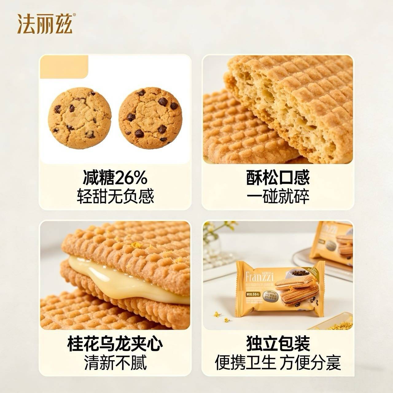 1. 法丽兹桂花乌龙味夹心曲奇 减糖26% 网红休闲零食独立包装饼干