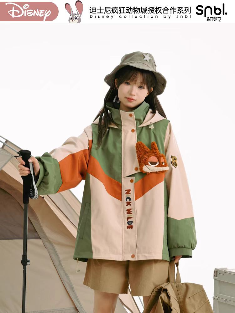 疯狂动物城尼克联名森女部落原创情侣装无性别撞色连帽风衣外套潮