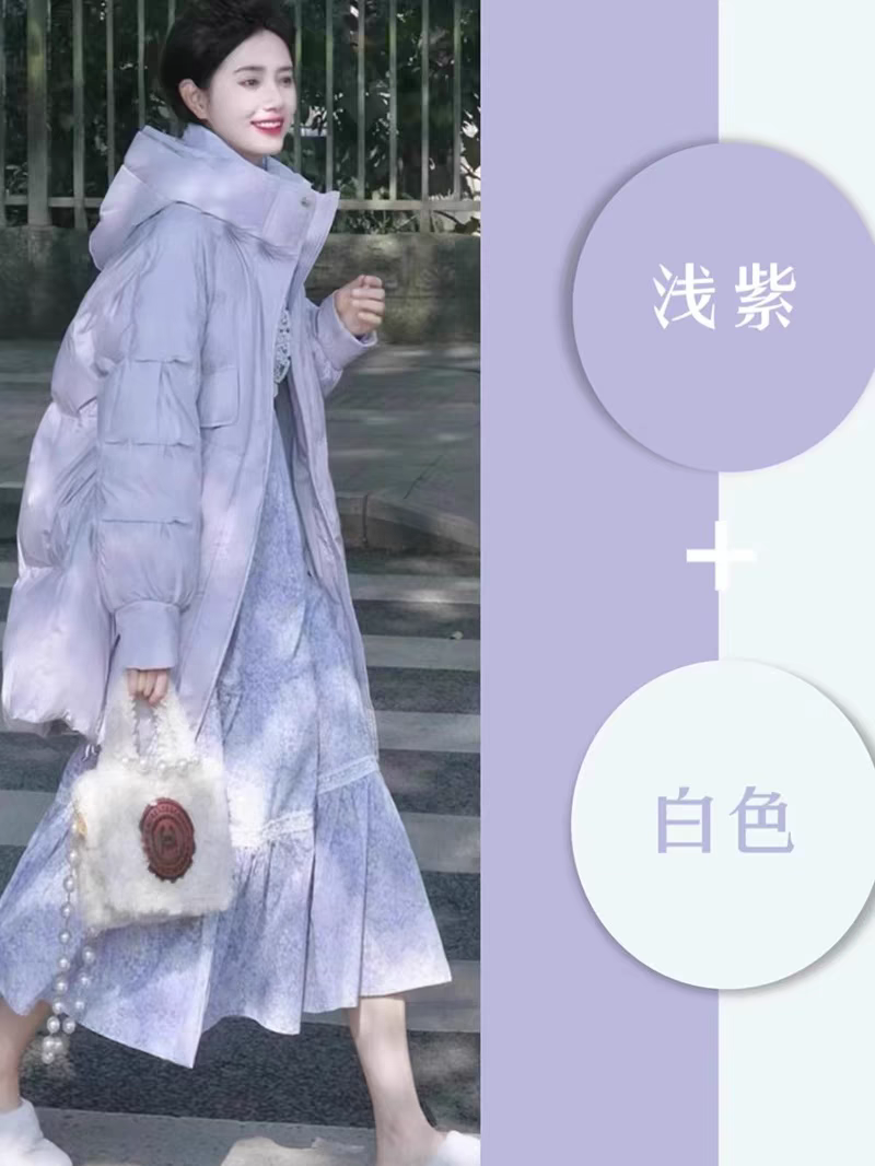 2024秋冬茶系穿搭一整套小个子女时尚紫色加厚羽绒棉服棉袄外套