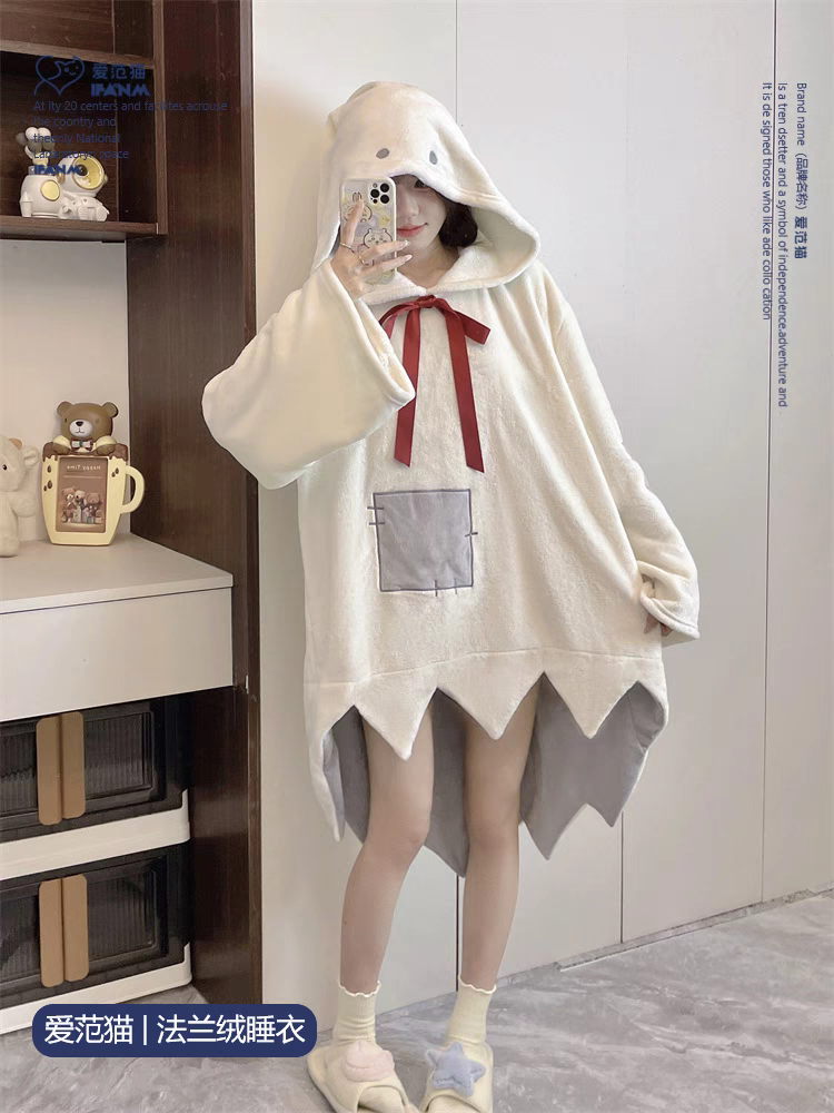 搞怪可爱小幽灵睡衣女秋冬季法兰绒加绒毛绒学生少年二次元家居服