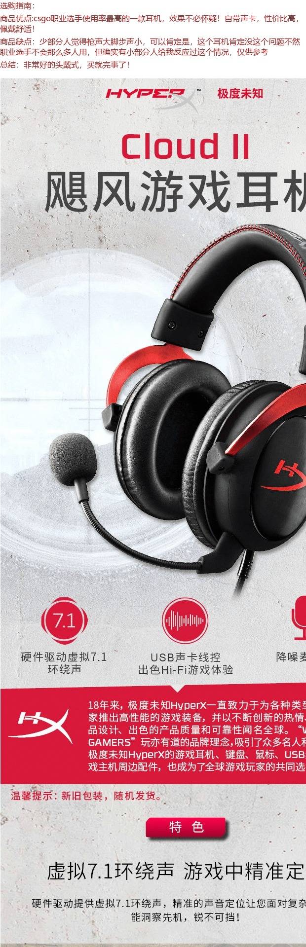 HyperX极度未知Cloud2飓风2头戴式7.1声道csgo电竞金士顿游戏耳机