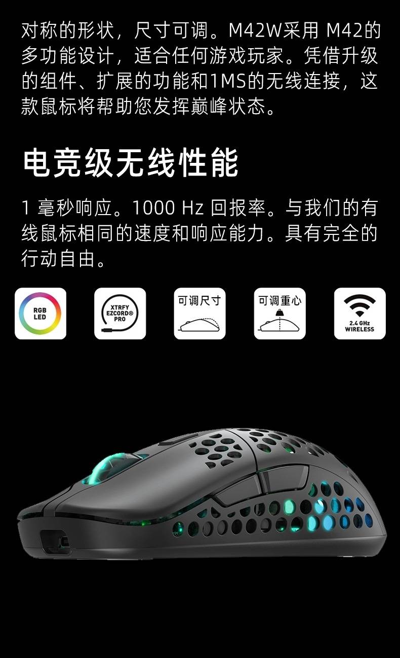 XTRFY M42W无线鼠标电竞游戏轻量化充电可调重心瑞典