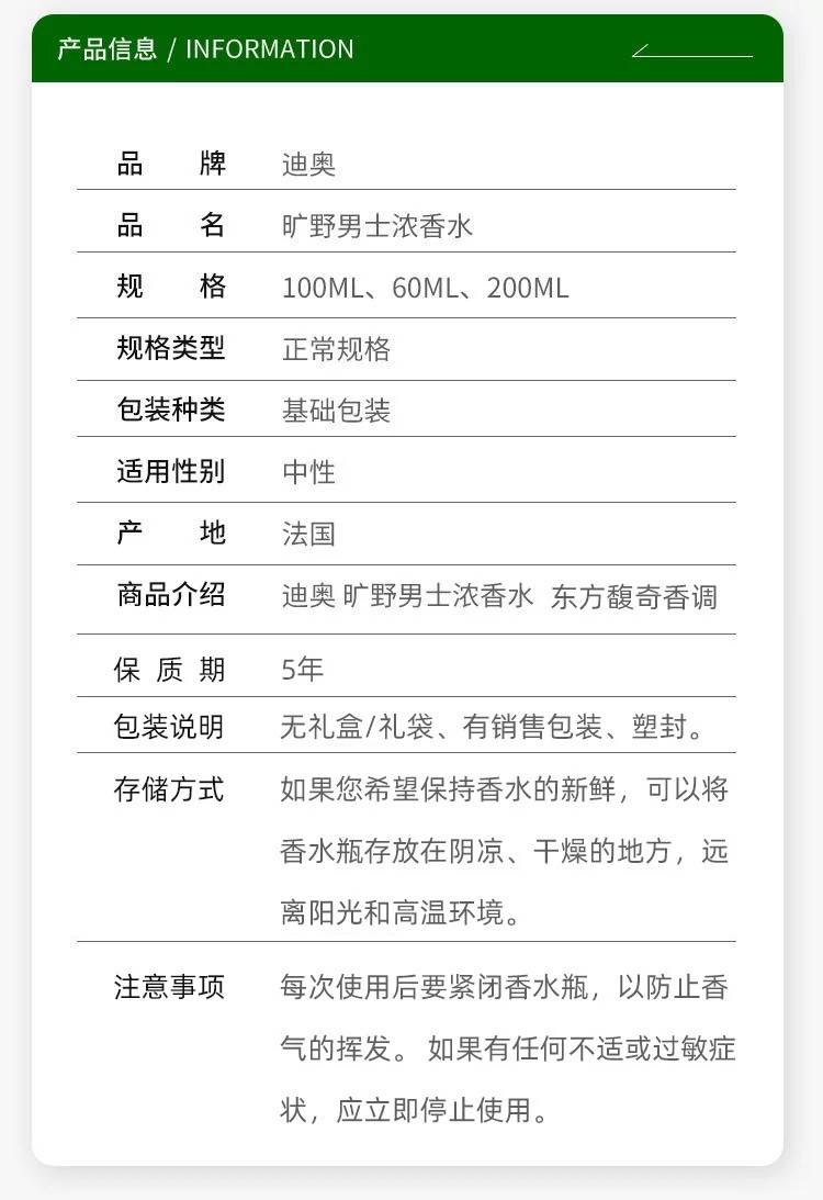 Dior迪奥 旷野男士浓香水60/100/200ML持久木质馥郁