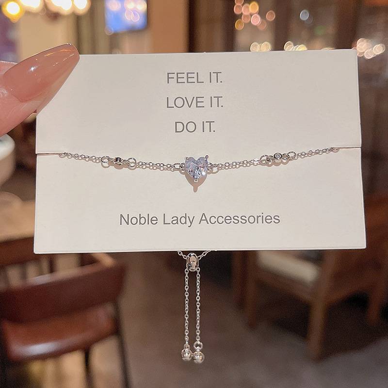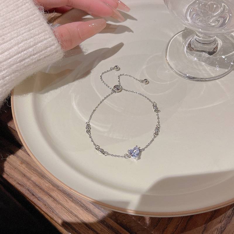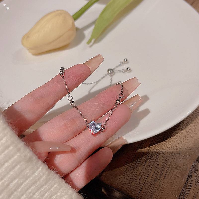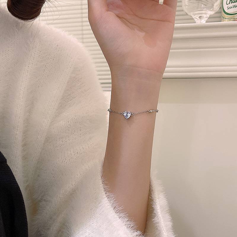 轻奢小众简约爱心锆石手链女ins潮高级设计感抽拉式手饰品批
