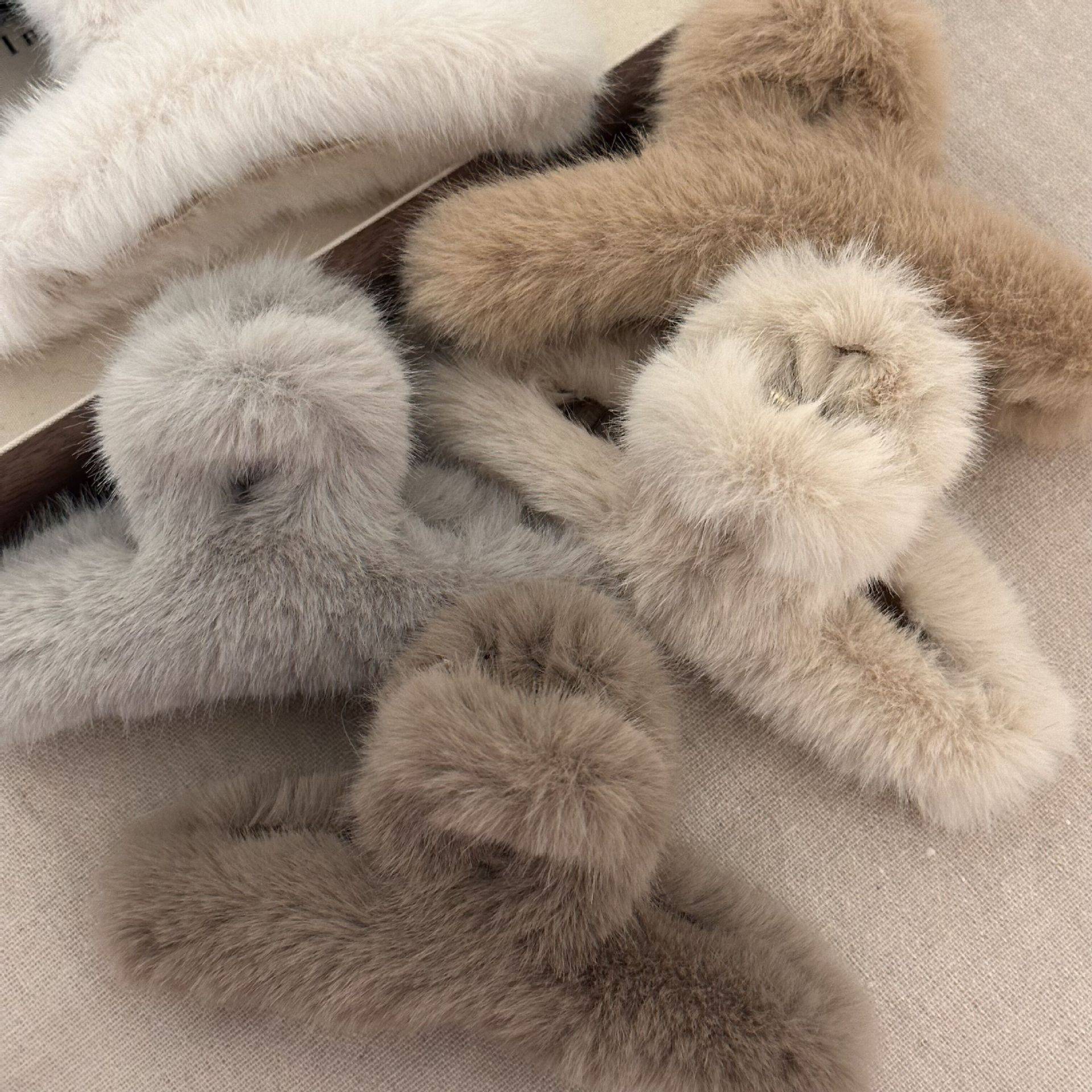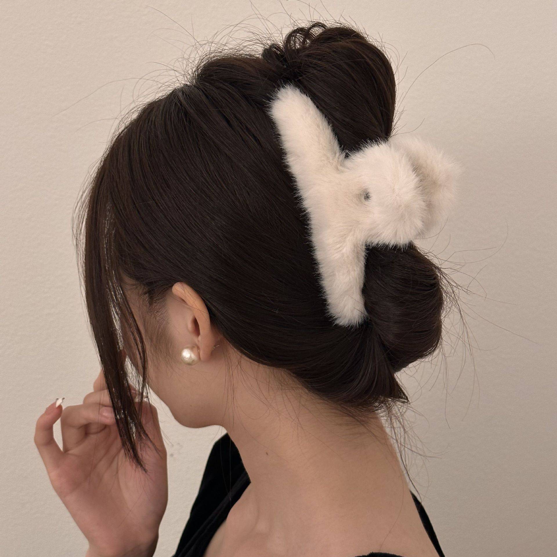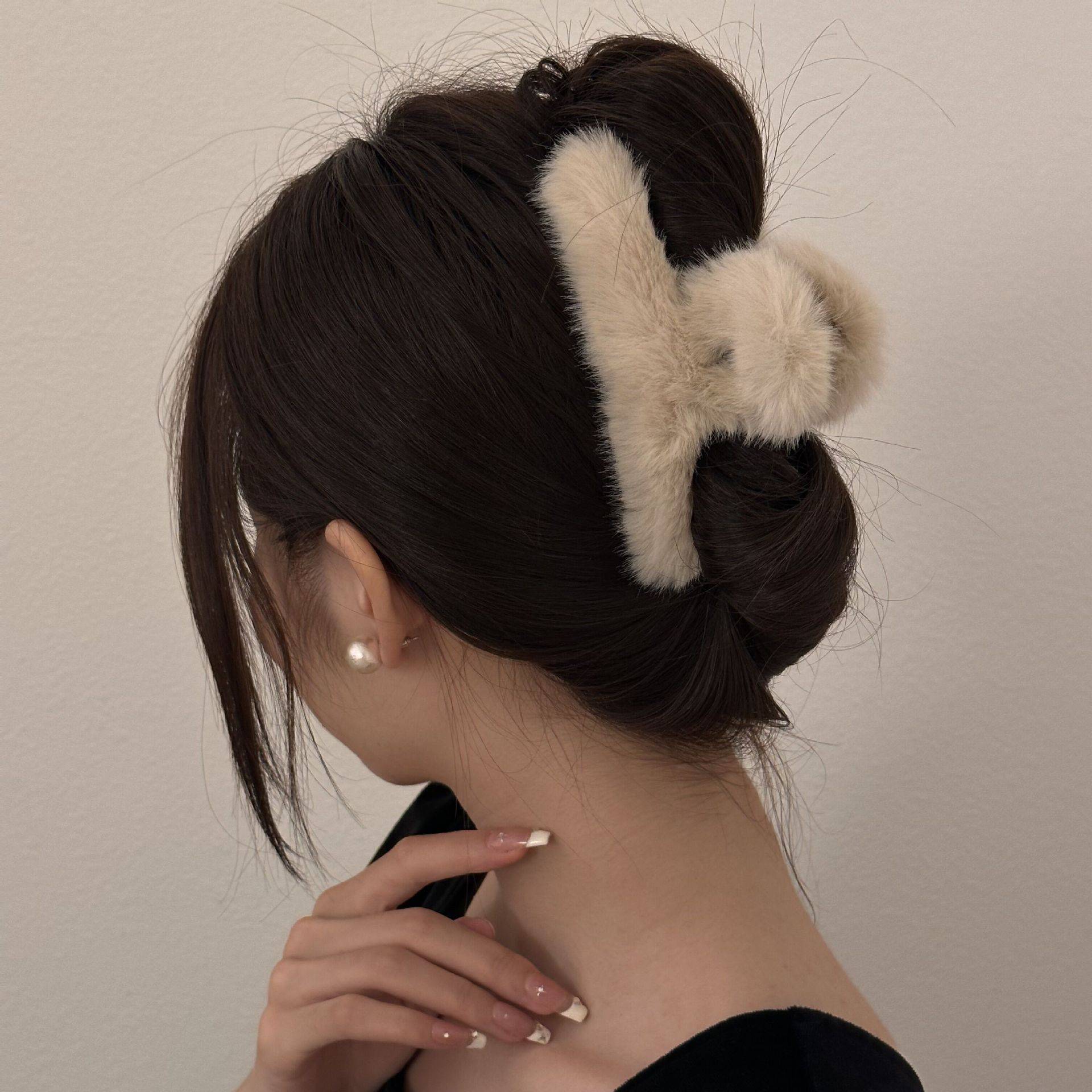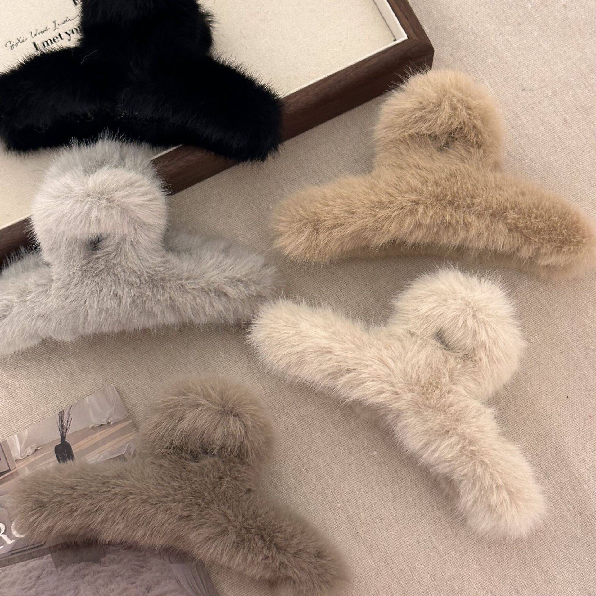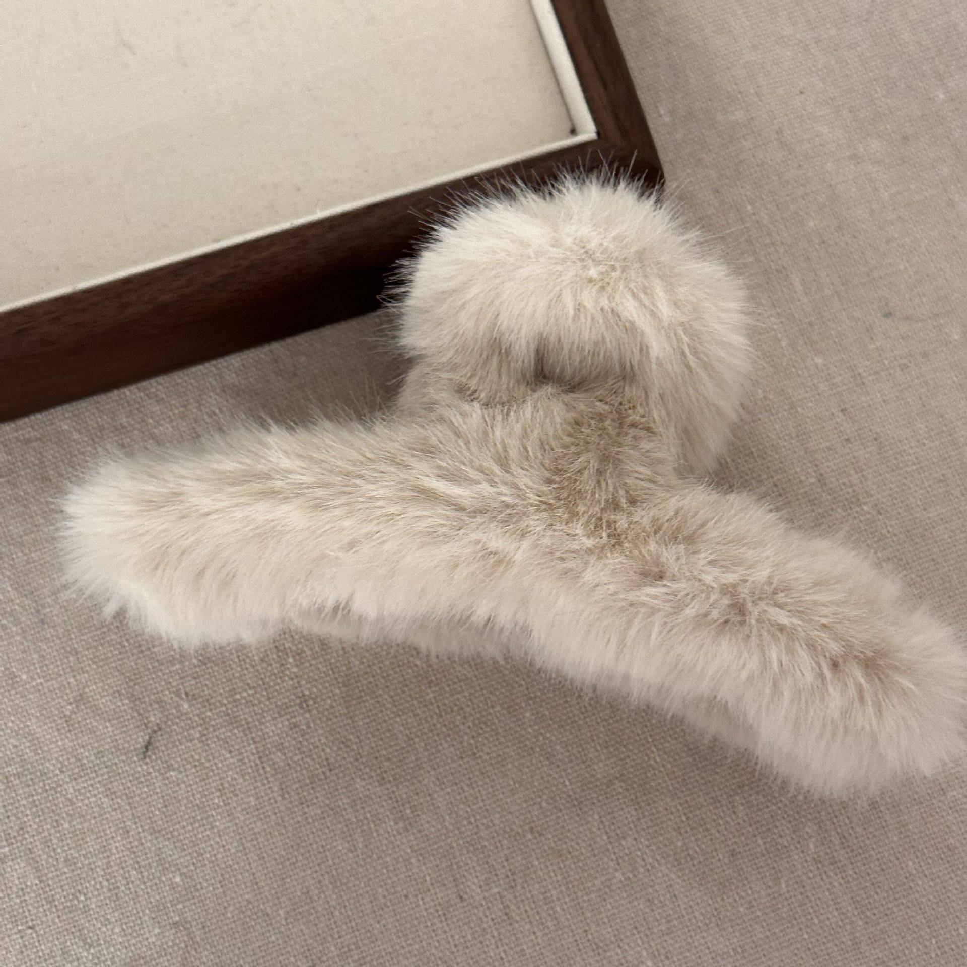 奶油色蓬松毛抓夹秋冬毛绒绒发爪鲨鱼夹温暖毛毛发抓盘发夹子发饰