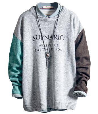 19 同色系拼接袖情侣毛衣男冬季加厚款保暖针织线衣潮流