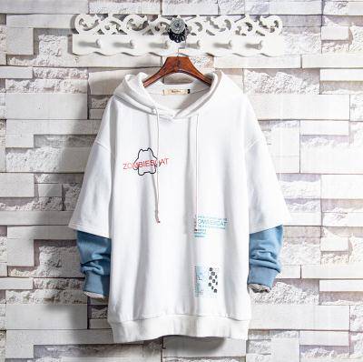 19 拼色假两件加绒卫衣男秋冬季学生潮流chic韩版打底潮