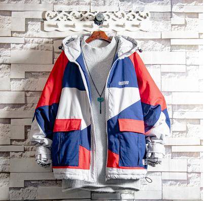 19 撞色拼接潮牌情侣棉衣男冬季学生连帽加厚棉袄服外套