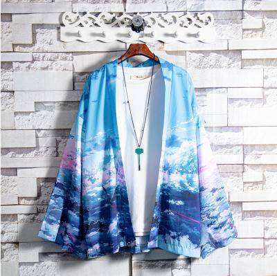 19a 海蓝色浮世绘防晒道袍衫男青年很仙的长袖外套潮牌