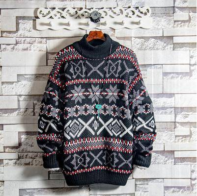 19 帅气半高领毛衣复古韩版拼色男生冬季加厚针织衫保暖