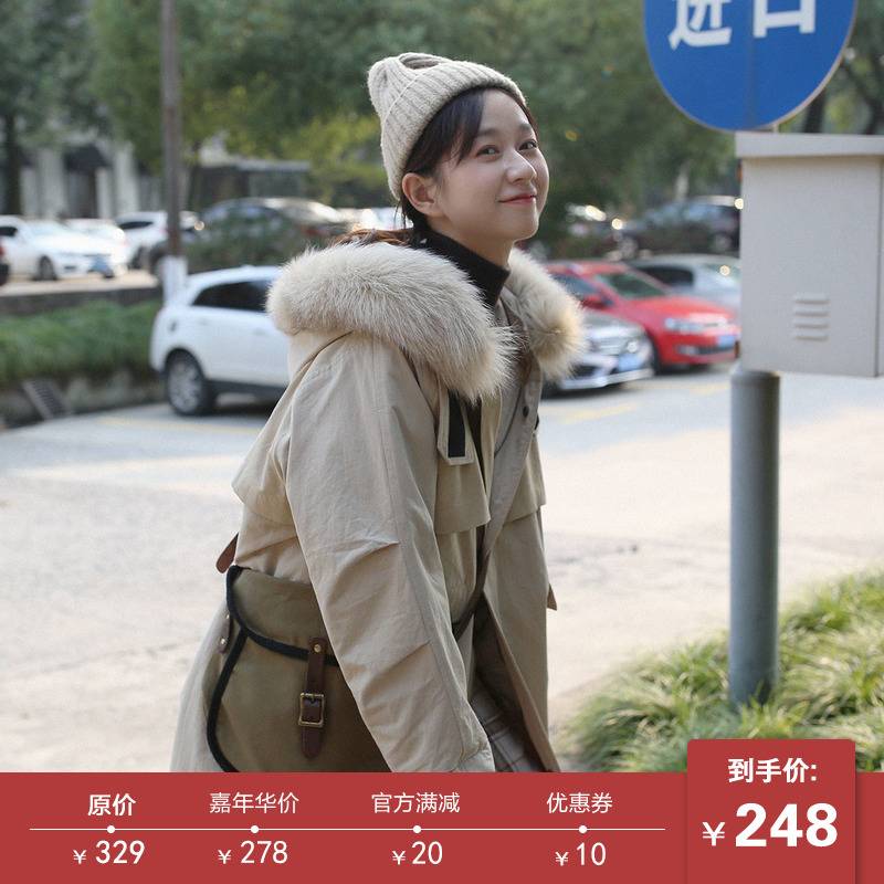 日系自制中长款毛领连帽棉服女宽松外套棉袄2018冬装新款 279.00 已售:1件