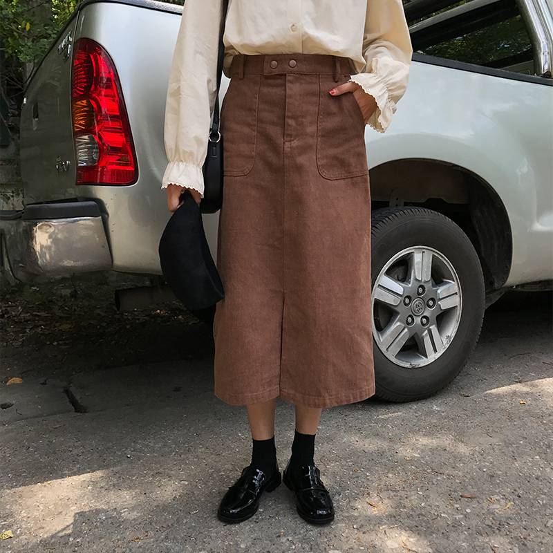2018秋季简约百搭高腰工装裙学生口袋半身裙韩系半身裙女 59.00 已售:0件