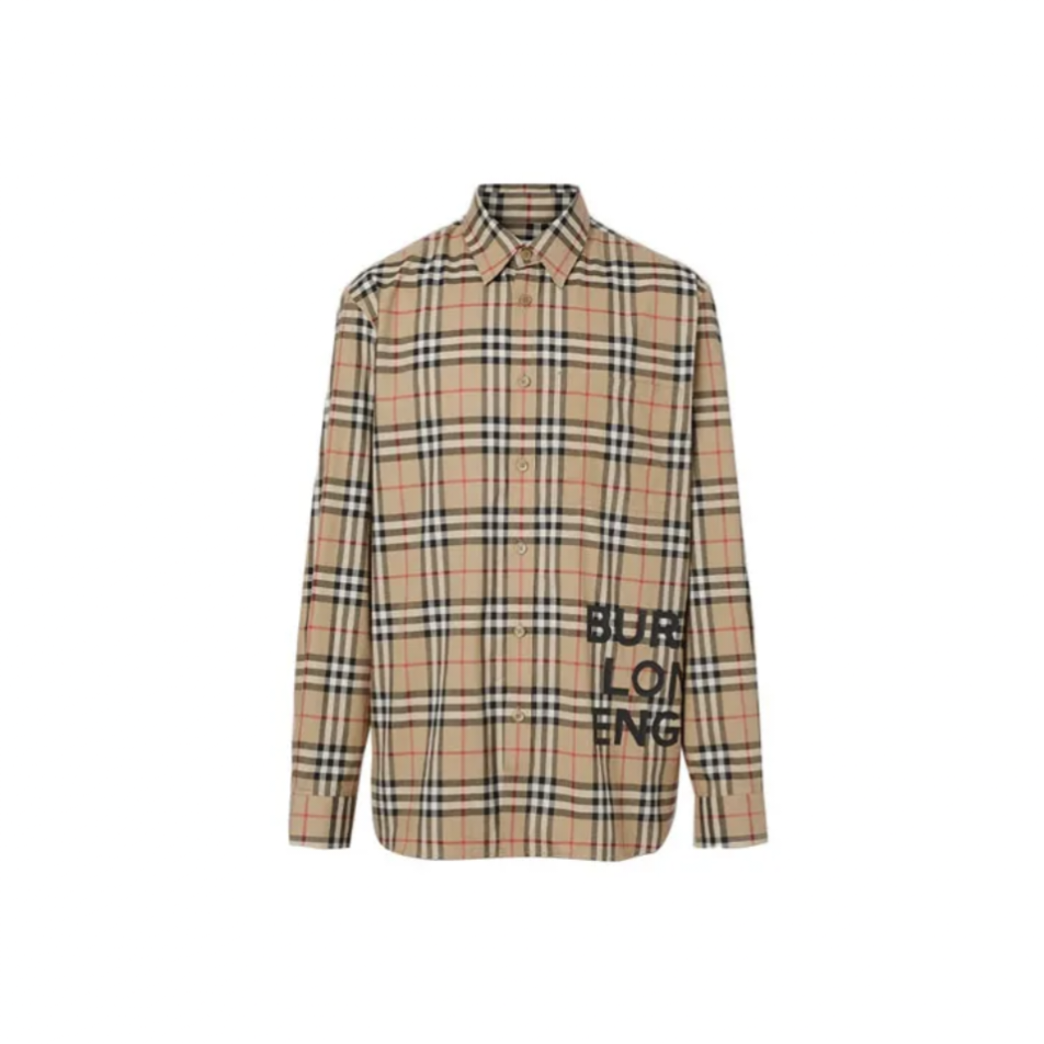Burberry徽标印花经典格纹棉质长袖衬衫秋季 男女同款大地色 送礼推荐 送男友 棉 合身 春,夏秋 长袖 面料 版