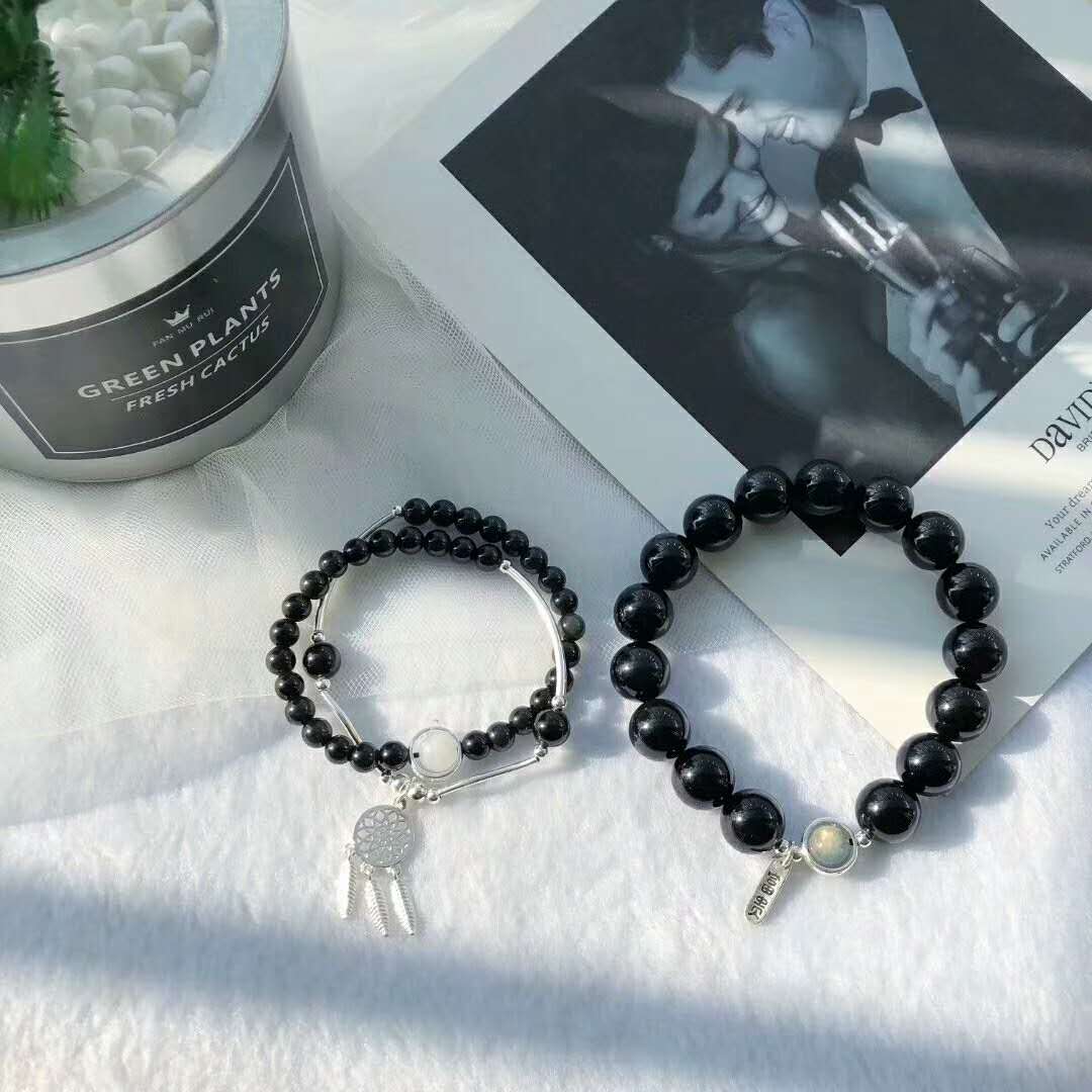 黑曜石手链情侣款一对 护身转运黑色珠子手链招财防小人简约男女