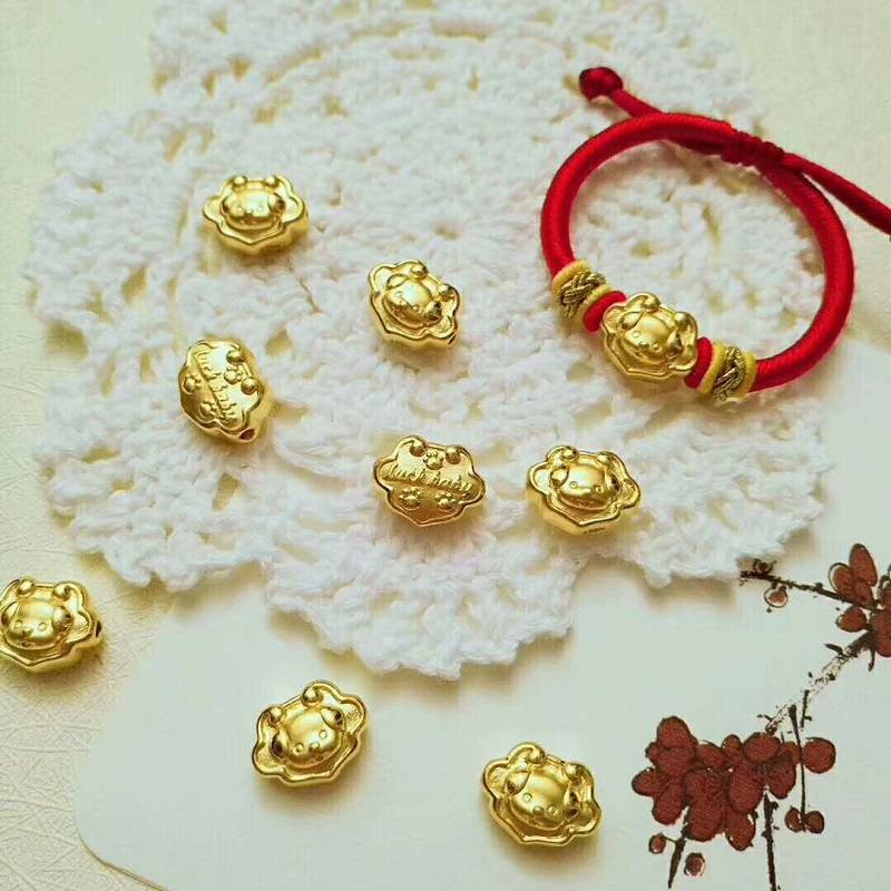 黄金转运珠红绳手链999足金3D硬金皮丘男女情侣情人节硬金狗狗福锁包