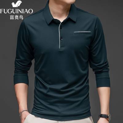富贵鸟桑蚕丝长袖T恤男士秋冬款商务休闲冰丝翻领体恤真丝Polo衫