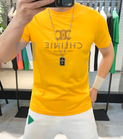 2022欧洲站夏季男士圆领亮片字母刺绣丝光棉短袖t恤衫修身半袖男