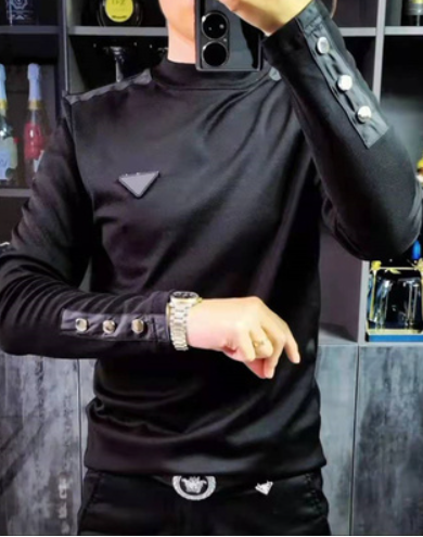 商务休闲男士打底衫春秋季新款半高领长袖T恤冬时尚潮流大码体恤