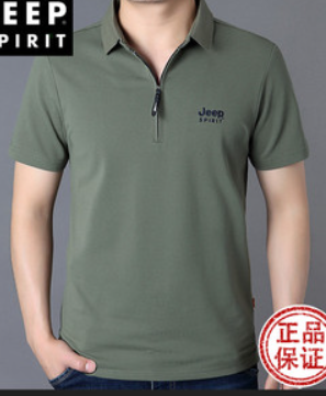 JEEP正品男装polo衫短袖棉t恤男士中年翻领半拉链吉普上衣体恤衫