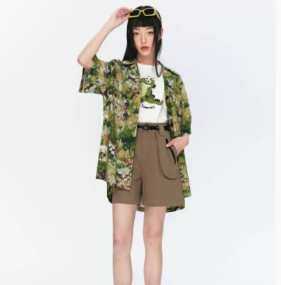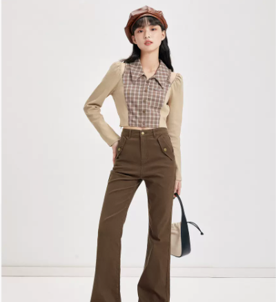 乐町拼接抽绳上衣2022秋季新款精致短款衬衫女宽松设计感小众