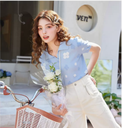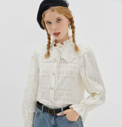 乐町衬衫女设计感小众可拆卸绣花甜美衬衫