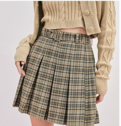 乐町格纹百褶裙女2022夏季新款短裙女装学院风短款设计感半身裙子