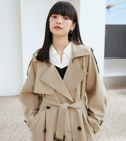 乐町休闲系带长风衣2022春季新款多色女风衣大衣宽松中长款小个子