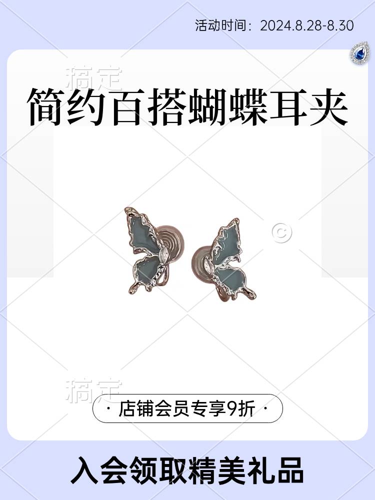2024年秋季新款轻奢简约百搭无耳洞蝴蝶耳夹