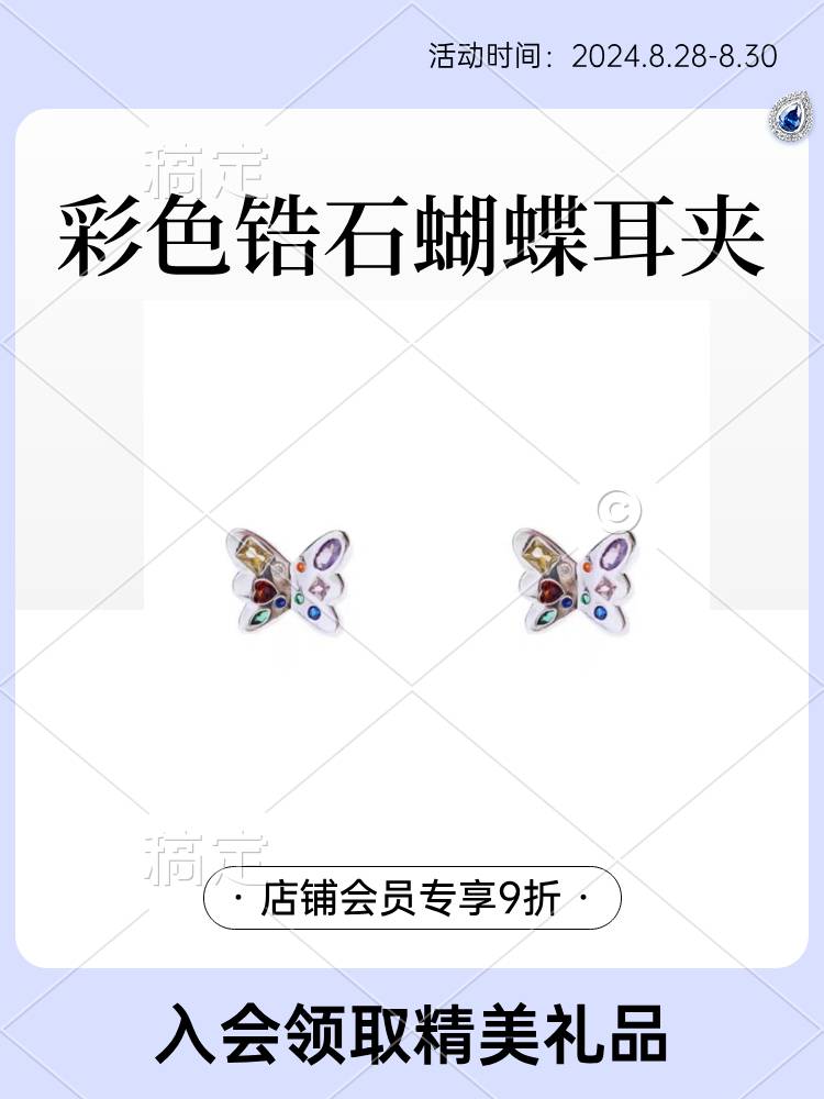 [小众品牌]2024开学季新款高级白搭无耳洞彩色锆石蝴蝶耳夹