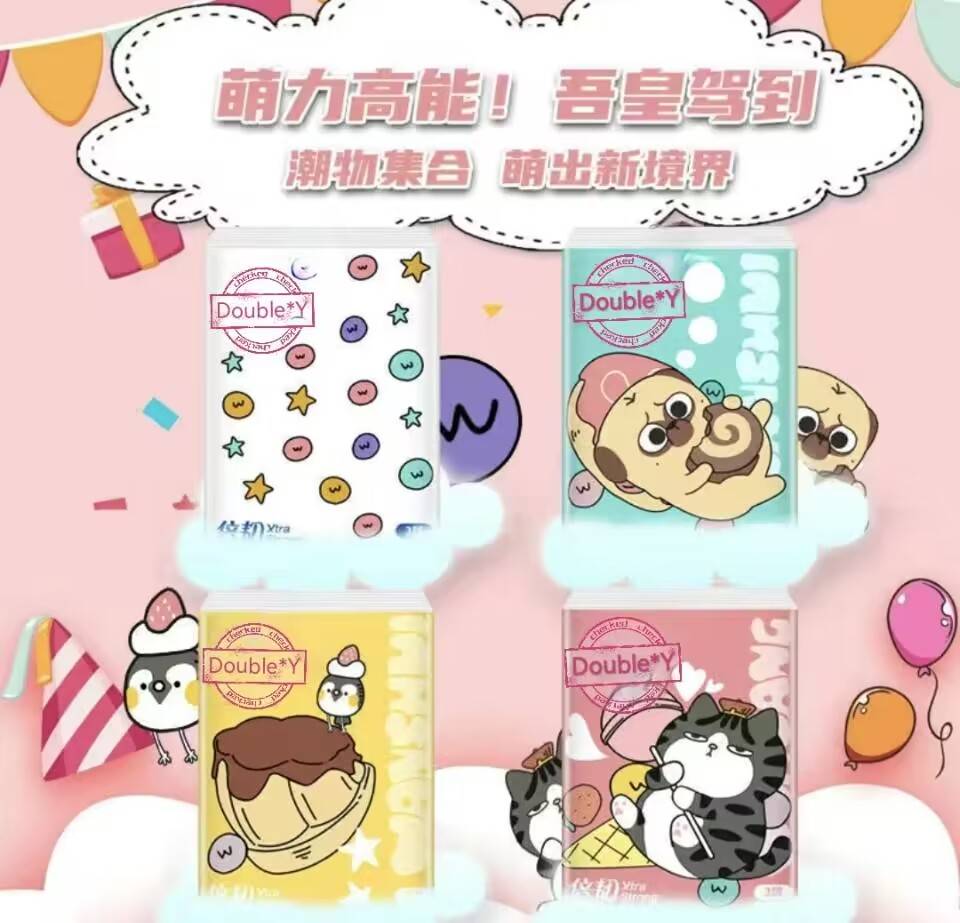 Double*Y手帕纸小包装卡通可爱随身可湿水面纸餐厅纸面巾纸印花设计